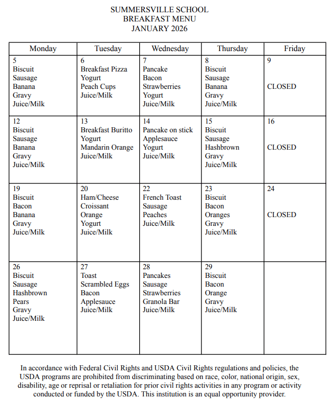 District Meal Prices Student Breakfast Student Lunch Adult Breakfast Adult Lunch $1.70 $2.55 $1.70 $3.35 $0.30 (Reduced) $0.40 (Reduced) January 2026 Breakfast Lunch